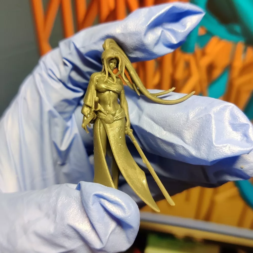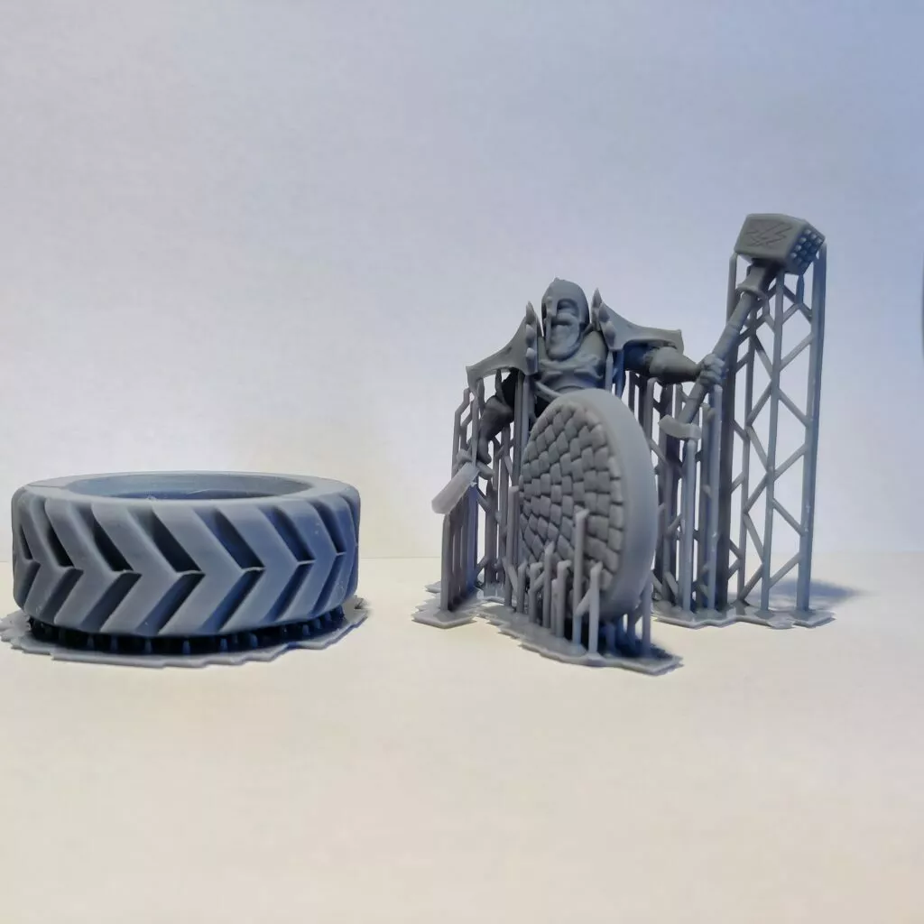 Vi har efter mange test og print opdaget, at standard resin er fint til minis som ikke skal bruges så meget, men bare være pæne, hvor stærk resin er det absolut bedste til en aktiv spilleaften, når der både skal vises det flotte design frem og også spilles uden at være bange for at noget går i stykker.